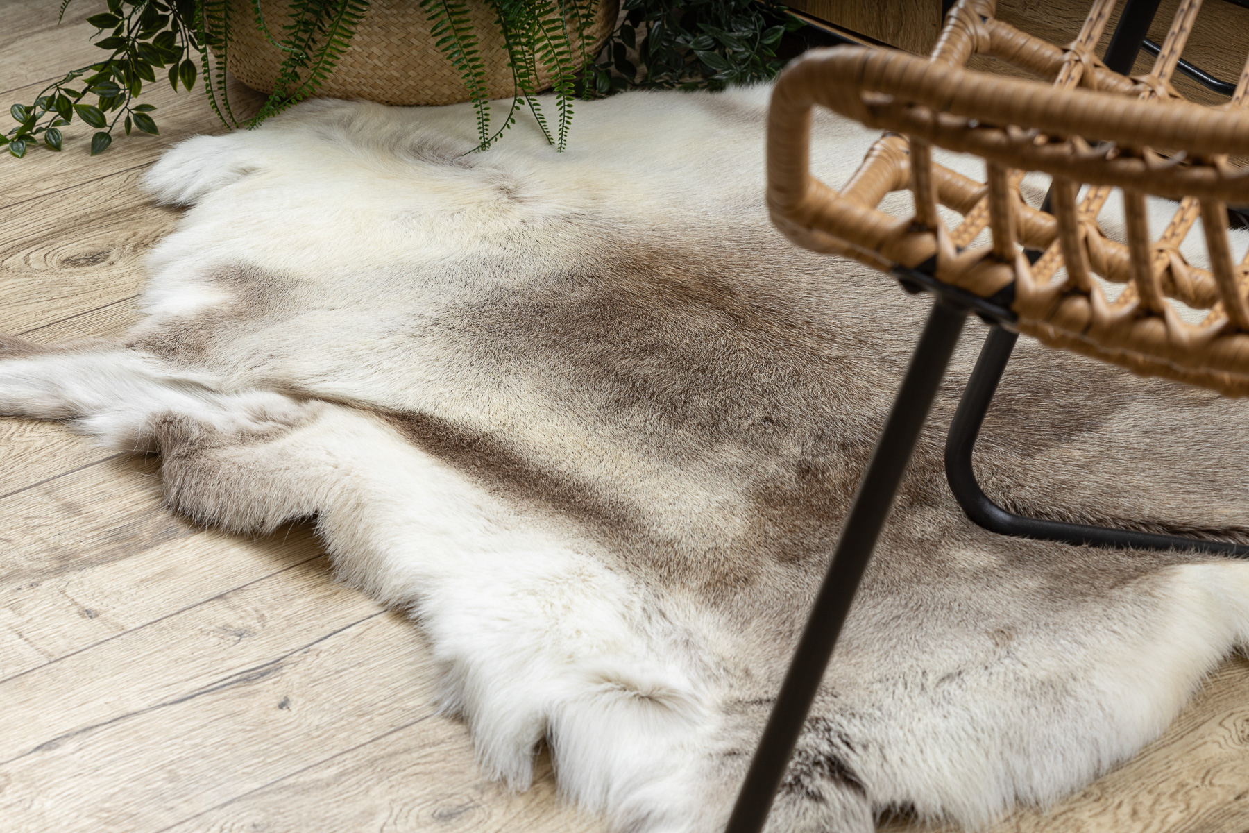 Skóra renifera jest materiałem naturalnym i delikatnym. Jej włosie ma strukturę rurkowatą (puste w środku), co oznacza, że przy intensywnym deptaniu może się łamać i stopniowo wypadać — jest to cecha typowa dla tego rodzaju skóry, a nie wada produktu.