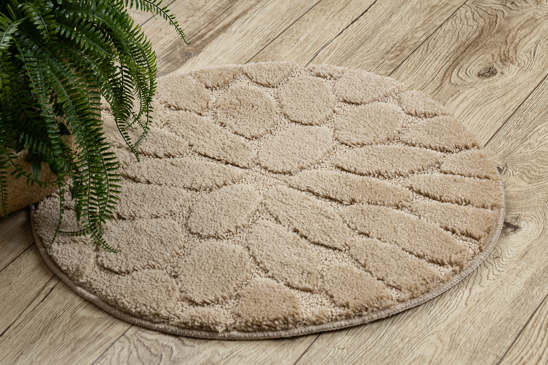 Dywan łazienkowy SUPREME koło STONES kamienie, antypoślizgowy, miękki - beż